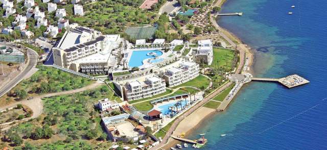 Açık ve kapalı yüzme havuzları, aquaparkı, konforlu iskelesi, ahşap güneşlenme alanları ve kumsalı ile 250 m uzunluğundaki özel plaja sahip tesisimizde tüm motorlu ve motorsuz su sporları yapılabilmektedir.