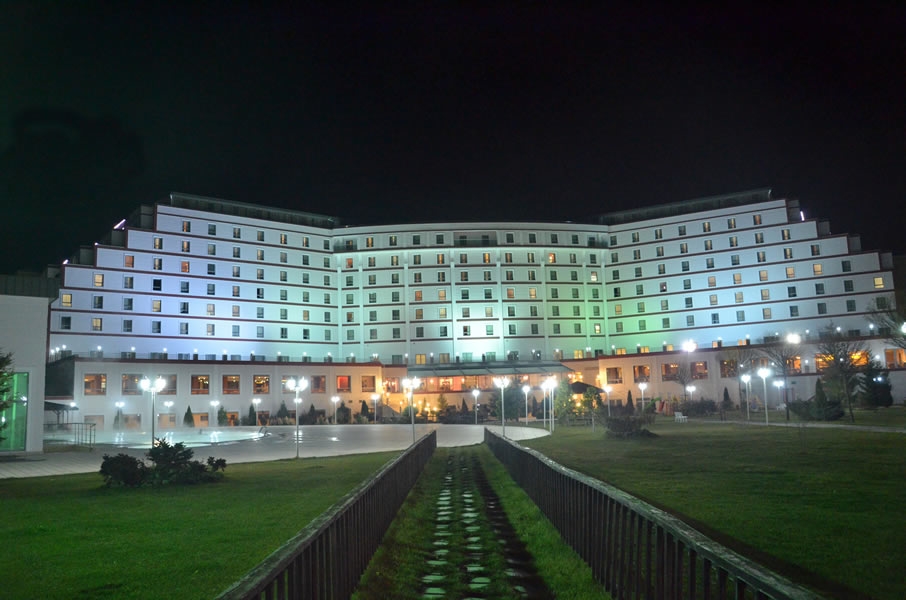 NOT:Tesiste bulunan fizik tedavi ve rehabilitasyon merkezi’nde uzman doktorlar ve fizyoterapistlerin denetiminde su tedavileri ve kaplıca tedavileri uygulanmaktadır. Muhtelif ısılarda olan su romatizmal hastalara ve kireçlenmelere tavsiye edilir.Ayrıca tesiste bulunan spa merkezinde çeşitli kürler, vücut bakımları, masajlar, çamur banyoları, aroma terapi banyoları uygulanmaktadır. Tesiste alkollü içecek servisi yapılmamaktadır.Kür merkezinde bayan erkek üniteleri ayrıdır.
